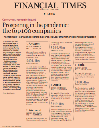 En un año sombrío para la mayoría de las empresas, una minoría ha brillado: los grupos farmacéuticos impulsados por su búsqueda de una vacuna Covid – 19; gigantes tecnológicos impulsados por la tendencia a trabajar desde casa y minoristas que ofrecen necesidades de cierre en línea.