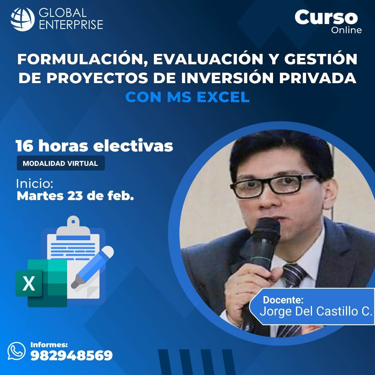 Formulación, evaluación y gestión de proyectos de inversión privada con MS Excel